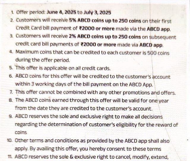 - Cashback will be credited as coins in your ABCD wallet.