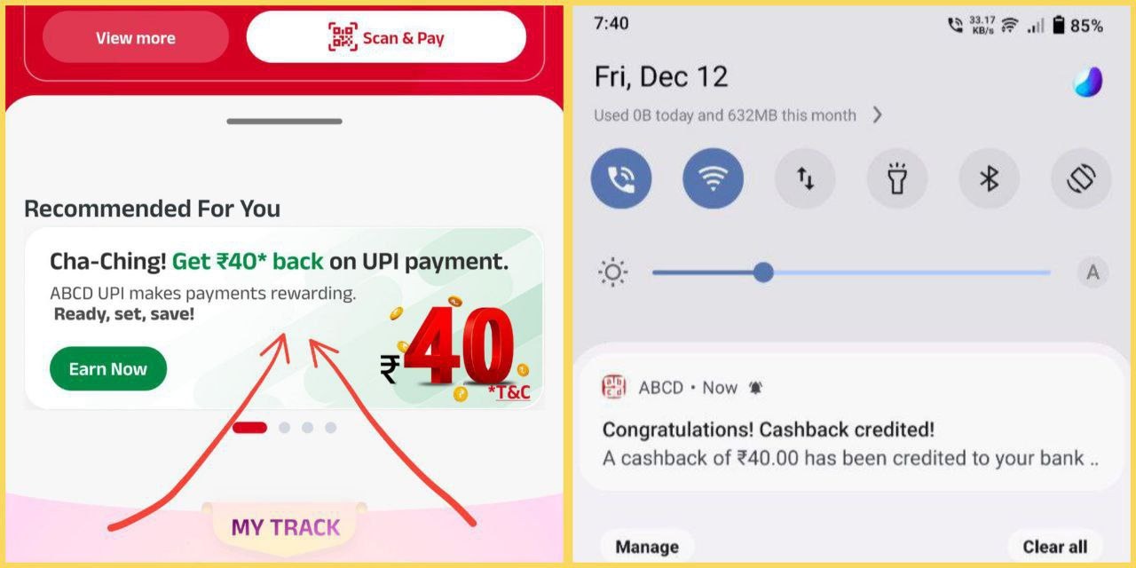 Haven’t made any UPI payment this month? Here’s your reward! ABCD UPI is offering a flat ₹40 cashback on your first UPI merchant transaction of the month.