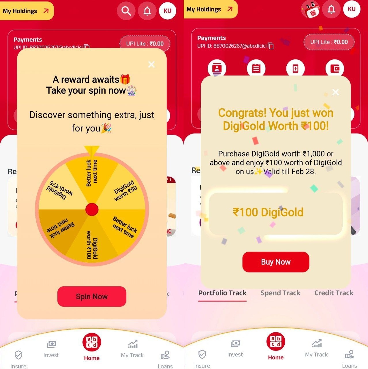 ABCD App brings a limited-time Spin & Win DigiGold Offer. Simply update the app, open it, and wait for the spin popup.