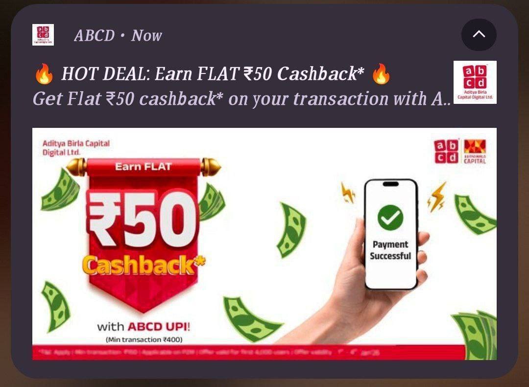 Make your first transaction this month, use ABCD UPI, and get ₹50 cashback before the offer ends!
