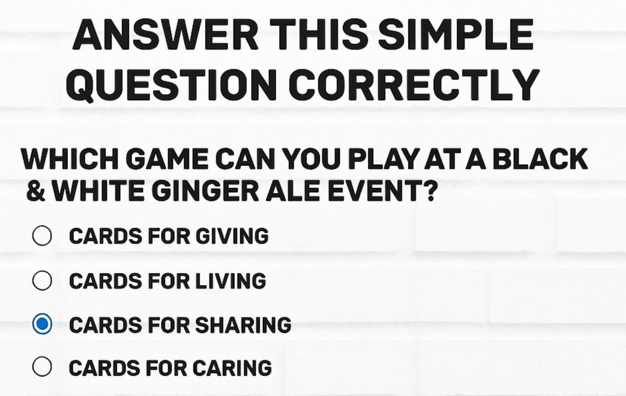 - Select the correct answer to “Which game can you play at a Black & White Ginger Ale event?”