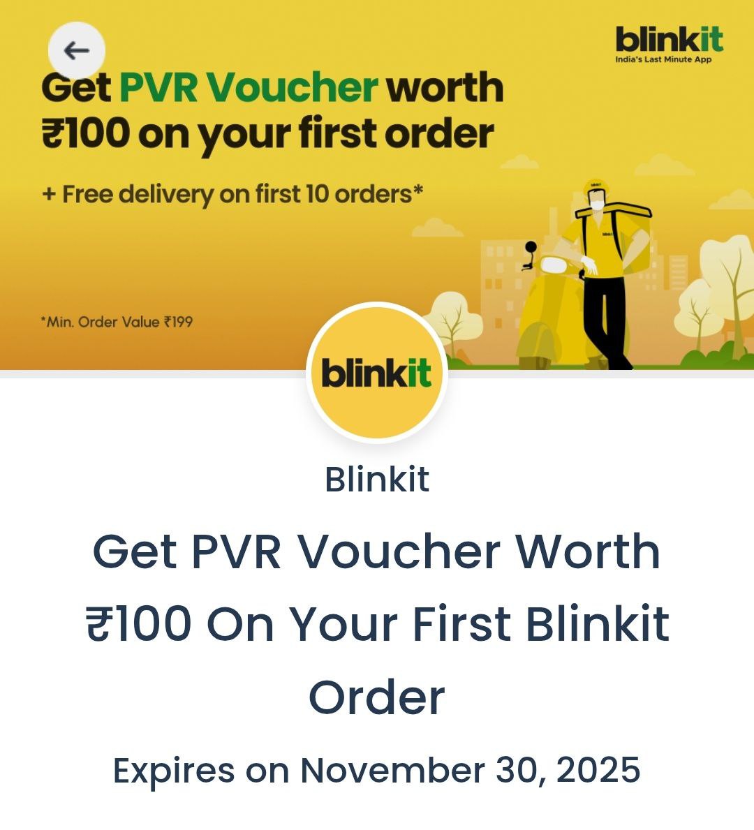 - Place your first Blinkit order of ₹199+.