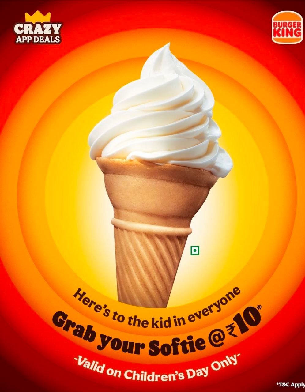 Celebrate your child this Children’s Day with a ₹10 softie exclusively at Burger King restaurants. This offer lets everyone enjoy the classic soft-serve cone at an excellent price.