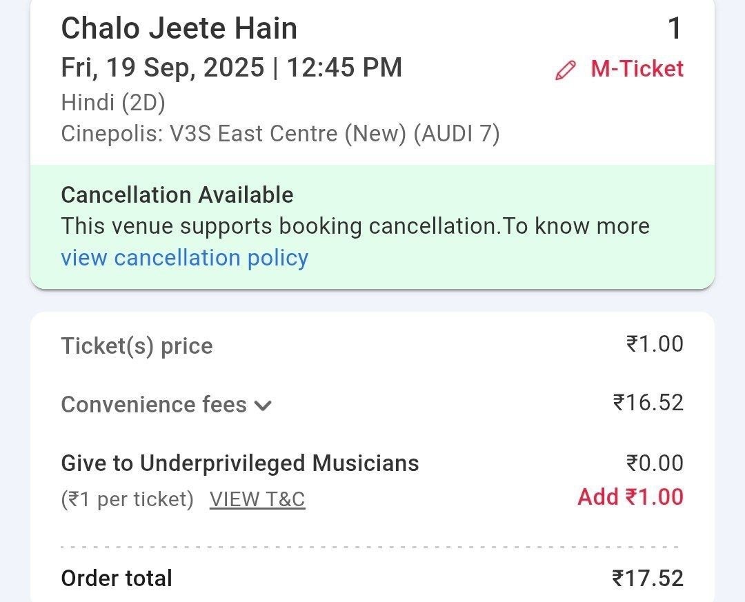 This is one of the most affordable movie offers you can grab right now. Just open the BookMyShow app, search for Chalo Jeete Hain, and book your ticket for only ₹1