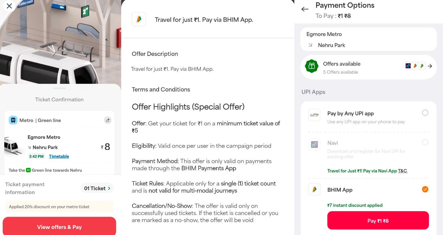 Chennai One ₹1 Ticket Offer using BHIM UPI for Bus Metro Train Travel