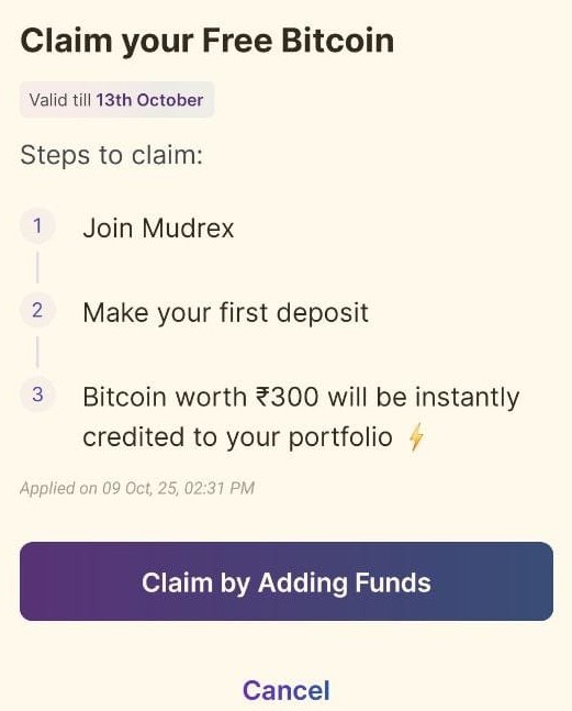 Sign up now and claim your ₹300 Bitcoin instantly. Complete the simple steps, and start earning today before this limited-time offer ends on 13th October!