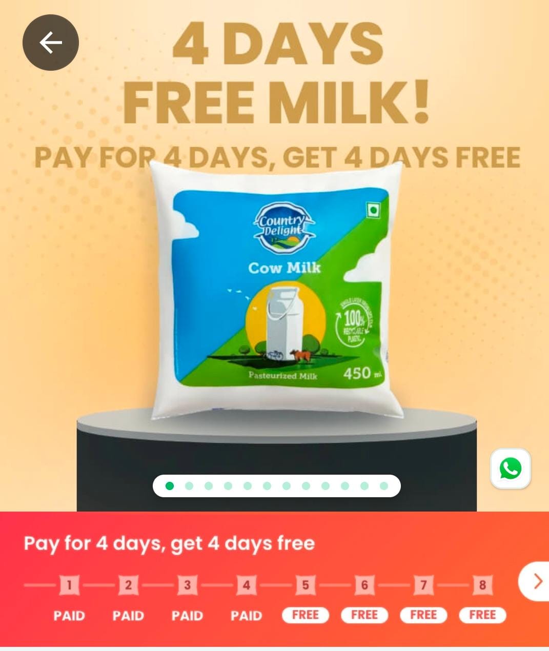 Here’s a delicious offer you can’t miss! Order Cow Milk from Country Delight for 4 days, and you’ll get the next 4 days of milk completely FREE – no hidden charges, no tricks!
