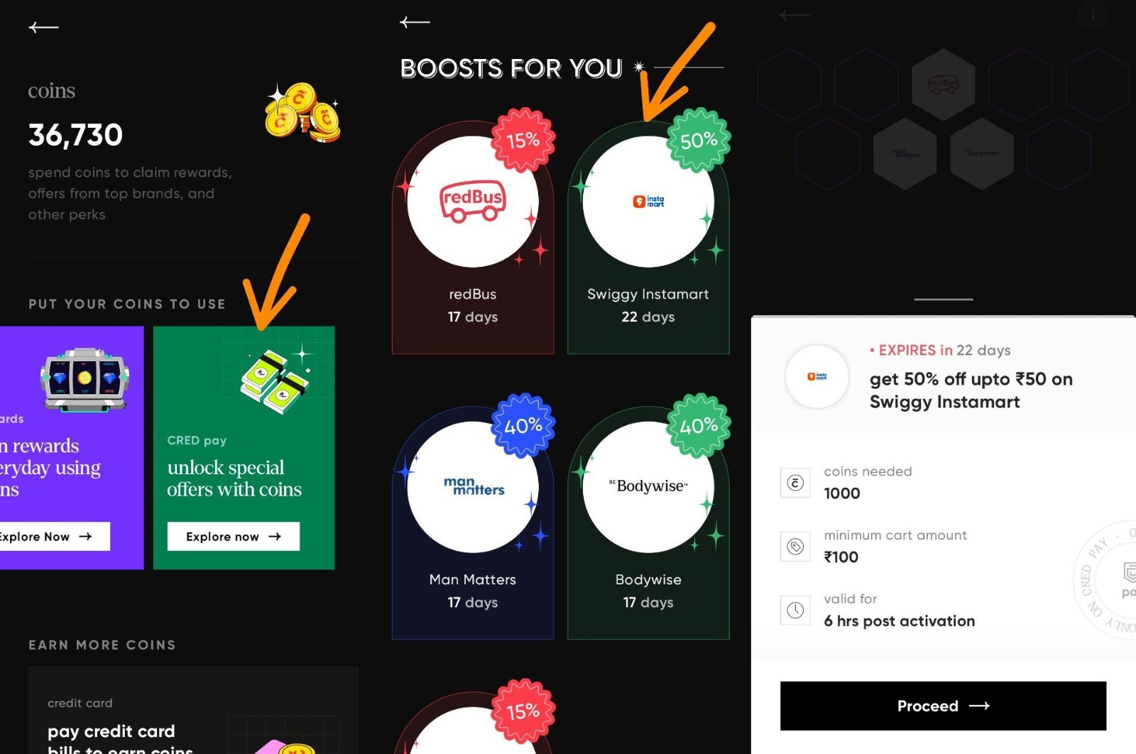 Unlock 50% off on Swiggy Instamart with Cred Coins! Enjoy shopping your essentials at Swiggy Instamart with a special discount.
