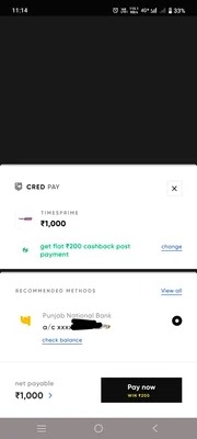 - Pay ₹1000 via CRED Pay.
