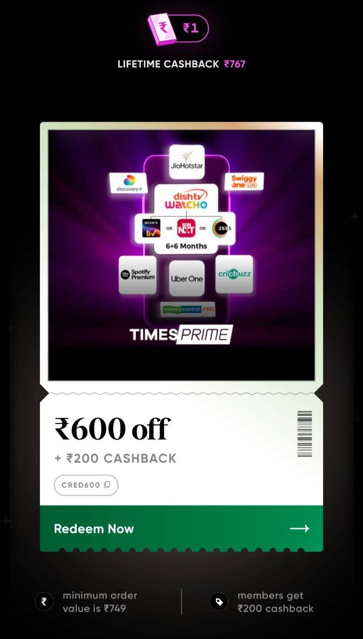 - Valid only via CRED Pay on TimesPrime