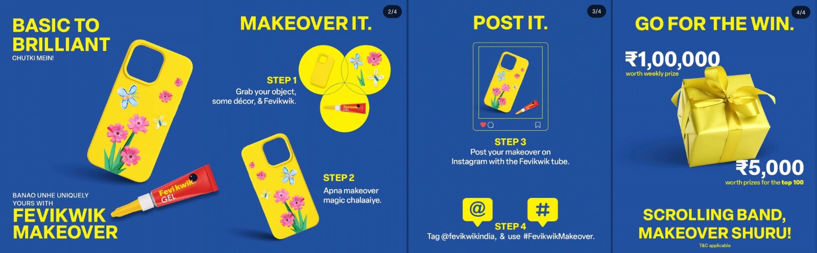 This is your chance to turn your old objects into something creative and win big! Whether it’s your phone case, décor items, or anything else-Fevikwik is your tool for a makeover.