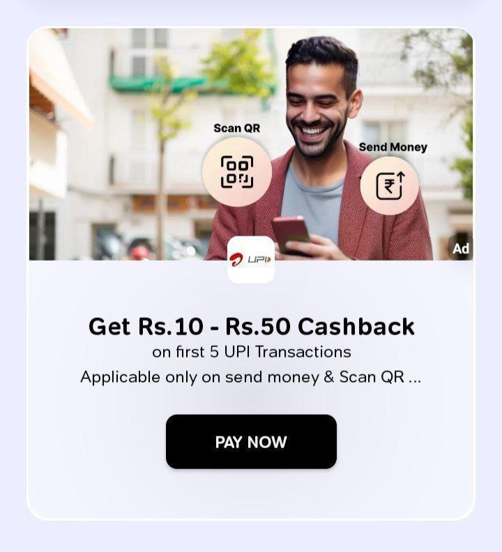 - Receive Cashback: Get ₹10 cashback for each transaction, totaling ₹50.