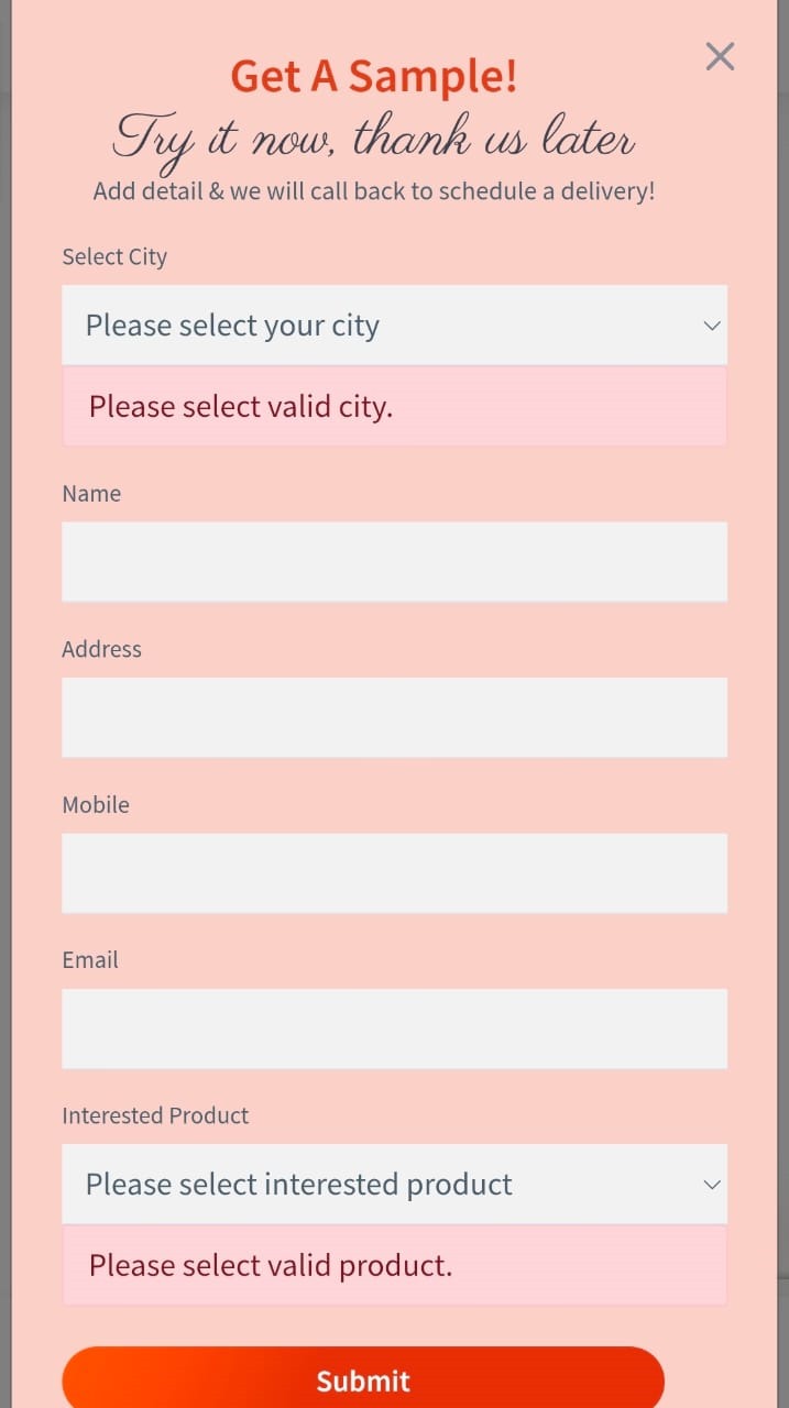 - Wait for the Free Sample Form to appear (it may take a few seconds)