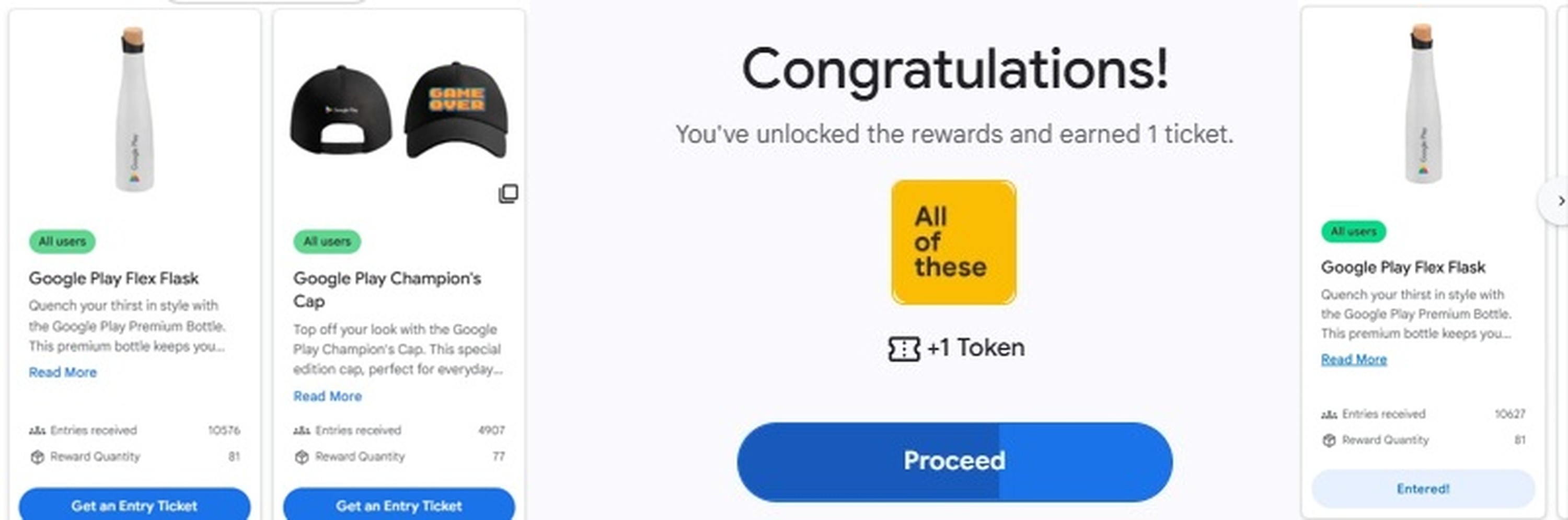 - Use your token to enter into giveaways such as: Google Play Flex Flask, Google Play Champion’s Cap