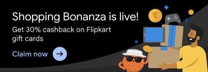 - This is a Google Pay Flipkart Gift Card Cashback Offer available for selected users.