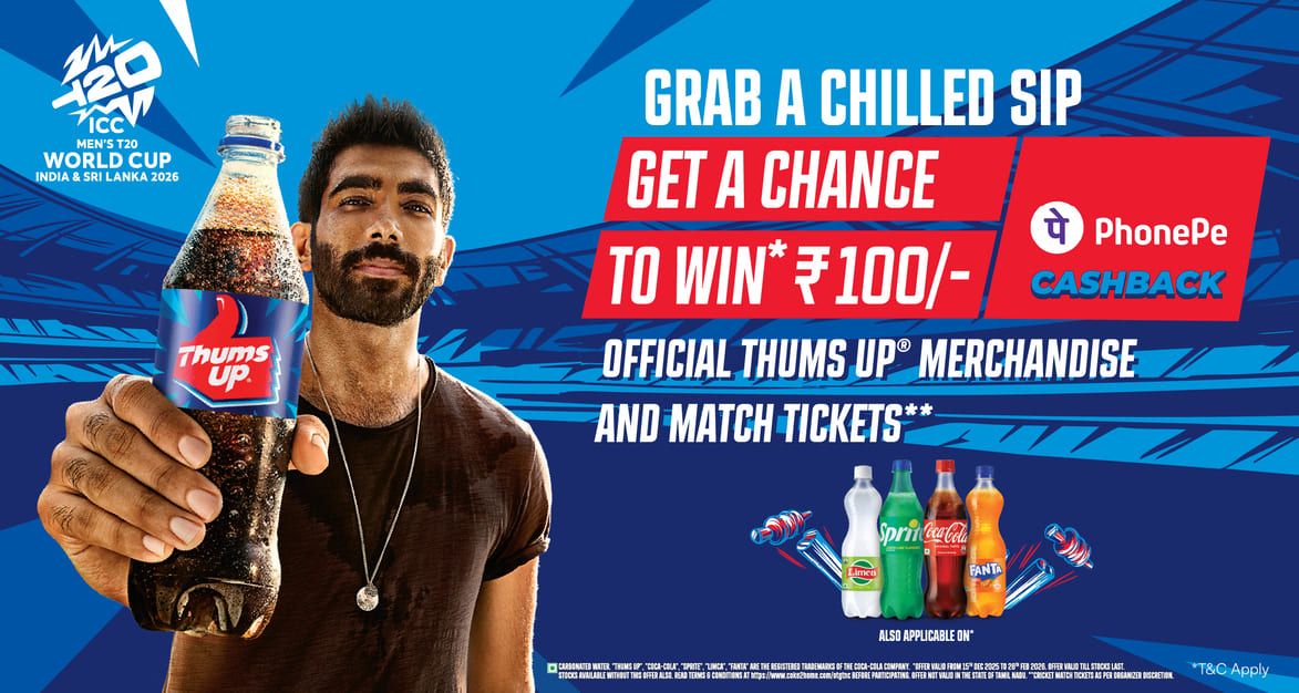The Thums Up brand, in collaboration with PhonePe and the ICC Men’s T20 World Cup 2026, is offering an exciting chance to win exclusive merchandise, match tickets, and PhonePe vouchers.