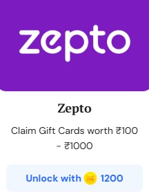5. Once you collect 1200 HT Coins, unlock the Zepto Gift Card.