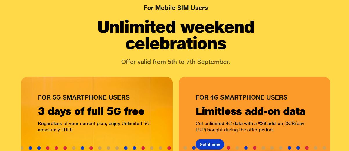 Jio 9th Anniversary Celebration & Enjoy a Weekend of Unlimited 5G