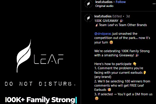 Leaf Studios is celebrating a milestone of 100K+ strong family members with an exciting giveaway! This is your chance to win FREE Leaf Earbuds and join the growing community of music lovers.