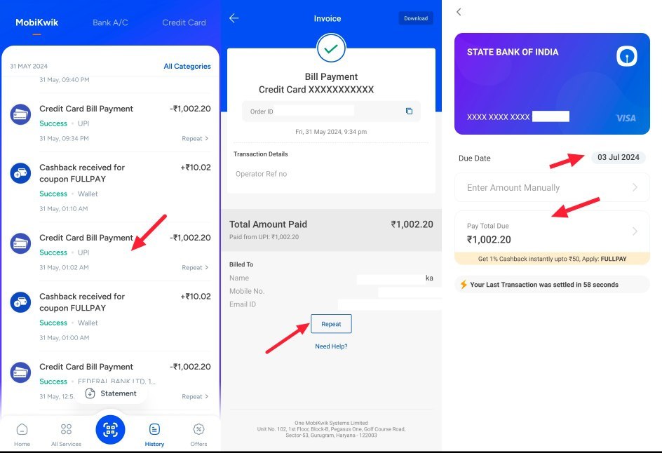 - Pay the Bill: Use the MobiKwiK app to pay your credit card bill.