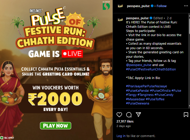 Grab this exciting chance to play, celebrate and win! Join the #PulseOfFestiveRun – Chhath Edition Game Contest 2025 and bring the joy of Chhath Puja to life with Pass Pass Pulse.