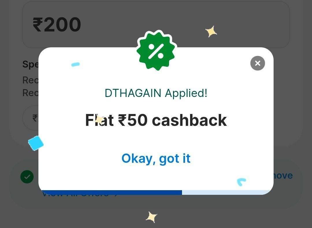 1. This offer provides a flat ₹50 cashback on DTH recharges.