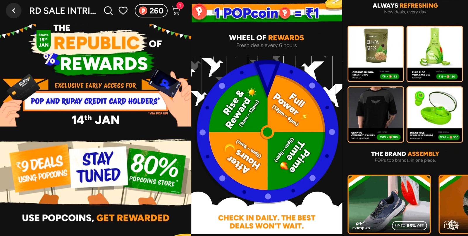 This Republic Day, let POP UPI reward you like never before. Whether it’s ₹9 deals, huge POP Store discounts, or surprise rewards from the wheel, the Republic of Rewards sale is packed with value.