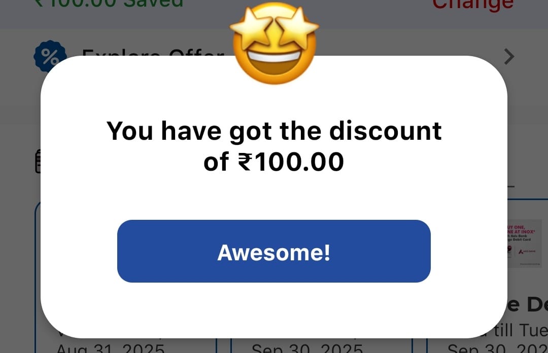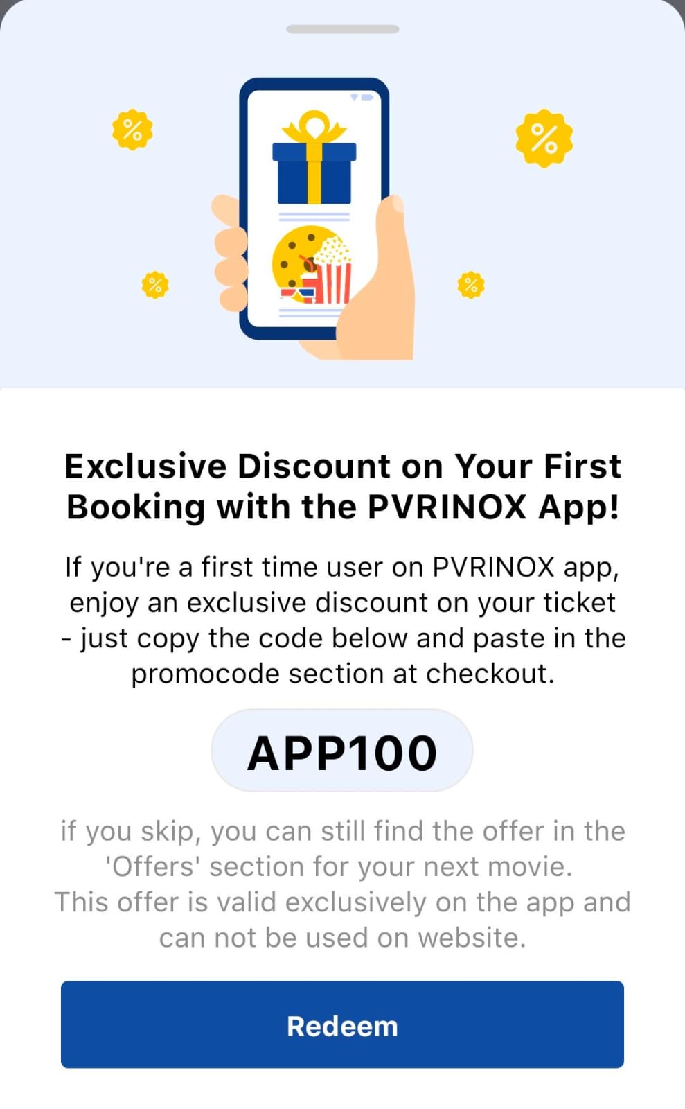 Get an exclusive ₹100 off on your first movie ticket booking through the INOX app! If you’re a first-time user, this is the perfect opportunity to enjoy a movie night at a discounted price. Simply use the promo code APP100 during checkout to avail of the offer.