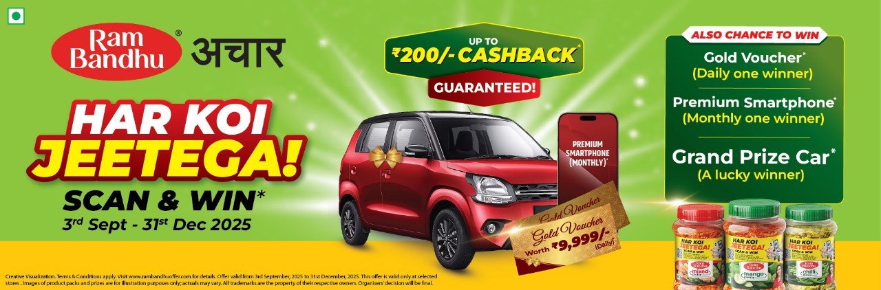 Grab the chance to win guaranteed cashback and amazing prizes like a Gold Voucher, iPhone 16, or a WagonR Car! Buy your Ram Bandhu Pickle Jar, & start scanning now.