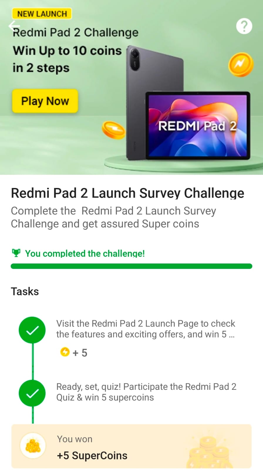 Flipkart is back with another exciting reward challenge! This time, it’s all about the brand-new Redmi Pad 2. Participate in the Redmi Pad 2 Launch Survey Challenge and earn up to 10 Flipkart SuperCoins absolutely free – no purchase required.