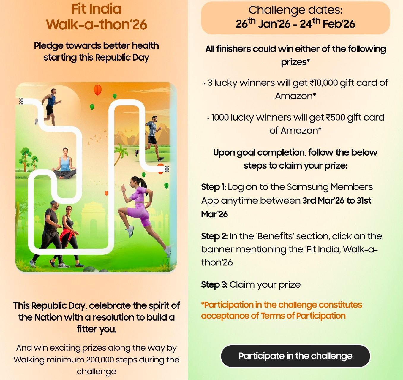 This Republic Day, Samsung users only can take a pledge towards better health by joining the Fit India Walk-a-thon’26.