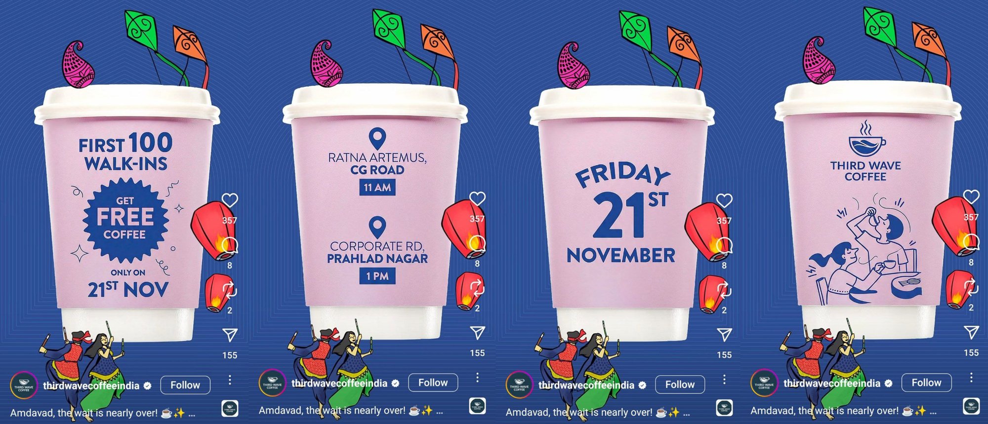 Amdavadis can finally enjoy Third Wave Coffee’s beloved flavours. Reach the café early, be among the first 100 walk-ins, and sip your free cup of happiness this 21st November.