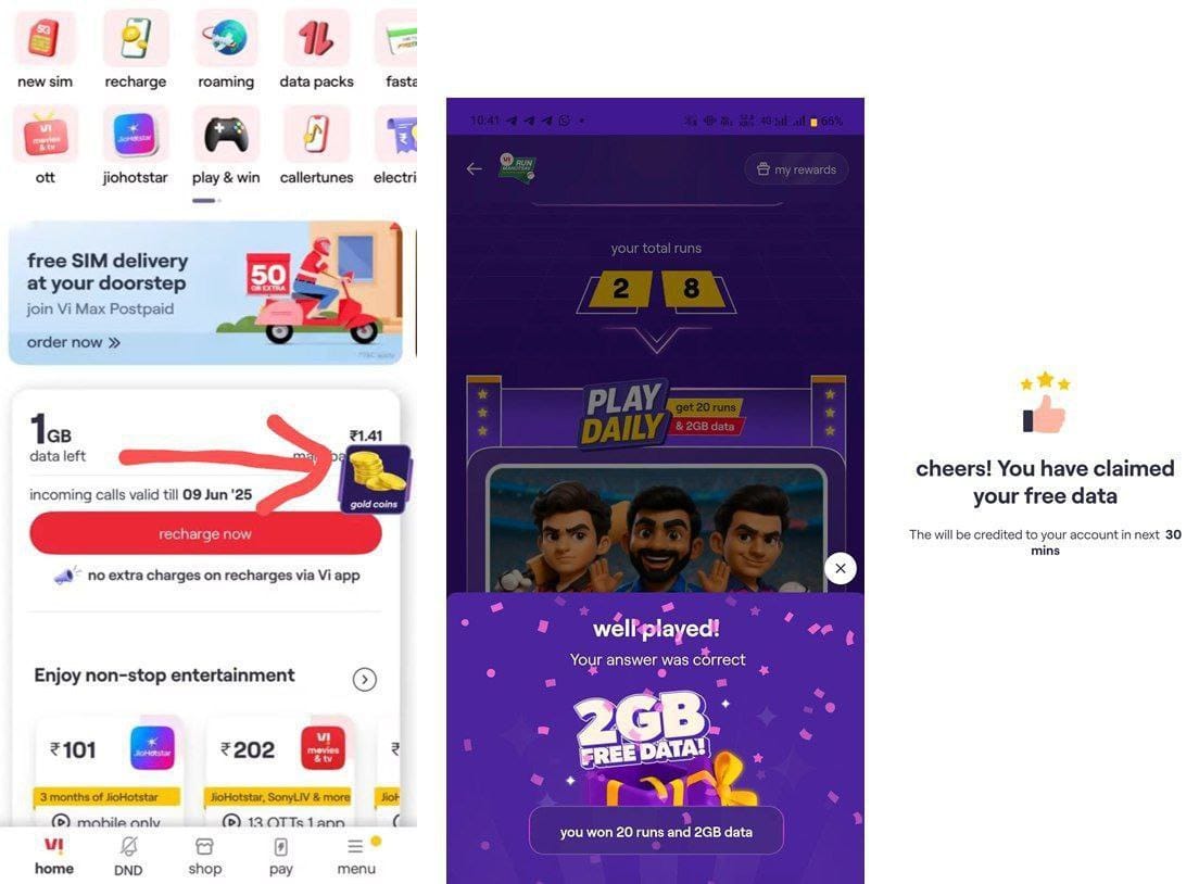 If you’re a Vi user and haven’t played the Daily Quiz yet, you’re missing out on free data and daily gold rewards. Don’t wait – install the app, answer one question, and claim your 2GB free data now!