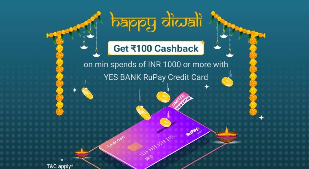 Celebrate Diwali with a cashback that brings value to your YES BANK RuPay Credit Card purchases! Enjoy ₹100 cashback on eligible transactions and make this festival Sweeter.